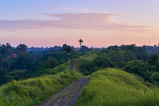 Balinese culture trough Campuhan ridge walk surrounded with lush rolling grass.