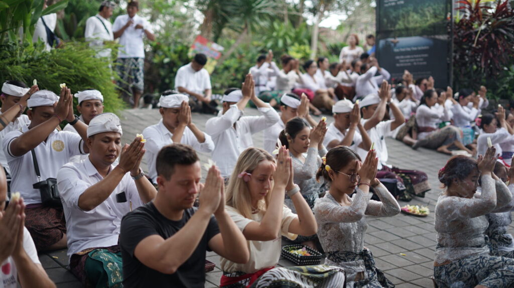 Beginning at 8 a.m., the ceremonial activities this involve prayers, offerings, and the traditional cleansing of the villa’s temple area (Pelinggih). Devotees will present offerings of fruits, flowers, and symbolic items as gestures of respect to the gods. Throughout the ceremony, the atmosphere will be filled with the sounds of traditional Balinese instruments (Baleganjur), creating a serene and spiritual environment for all involved.